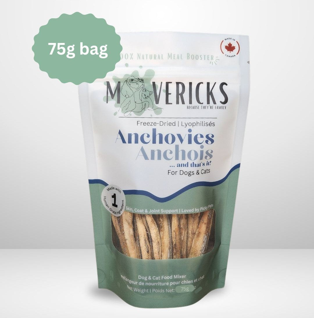 Dive into the world of natural delight with our Single Ingredient Anchovies—pure, simple, and oh-so-tasty! These little fish pack a punch of savory goodness, providing a burst of omega-3 fatty acids to support your pet's overall well-being. Our anchovies are a wholesome treat that adds excitement to mealtime or serves as a standalone snack. Each crunchy bite is a testament to the quality and care we bring to your pet's plate. Treat your furry friend to the irresistible flavor of single-ingredient goodness with our Anchovies—because sometimes, less is truly more!