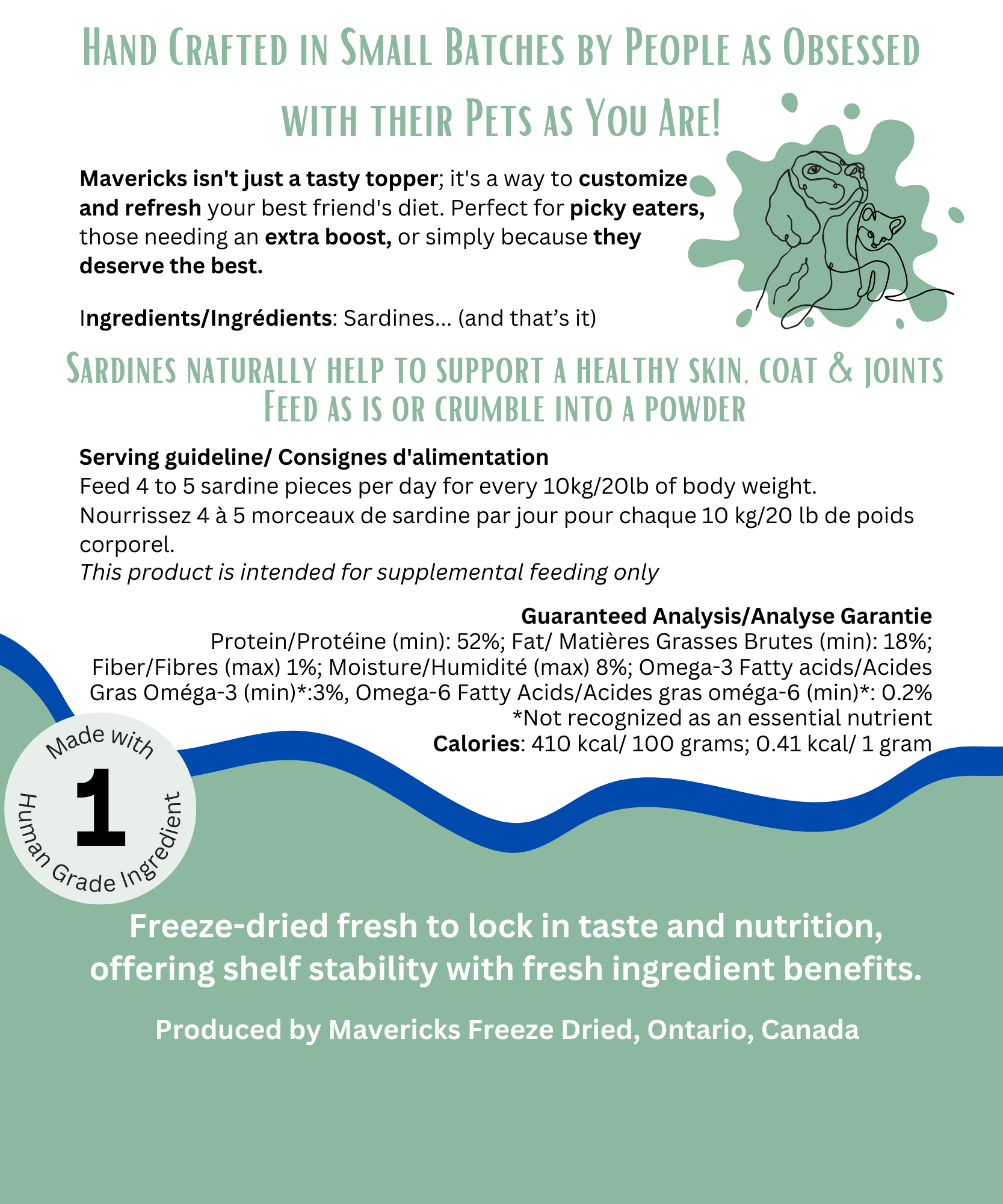 Freeze Dried Sardine for Dogs & Cats - Skin and Coat Support Dog and Cat Food Topper